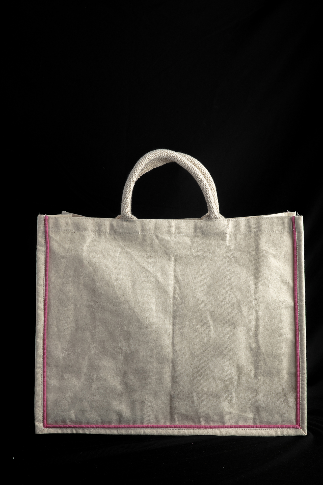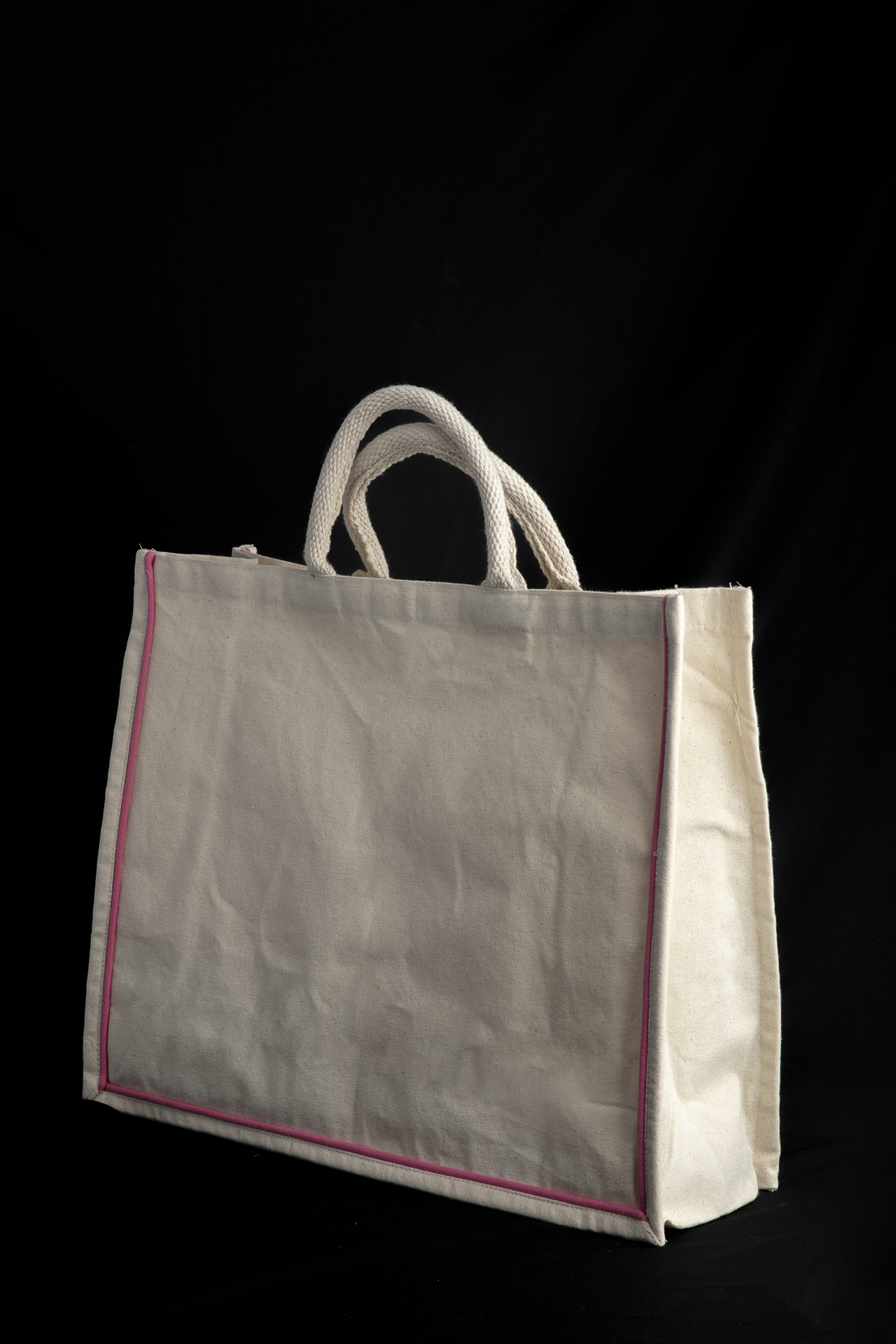 A premium swag product! This large, capacious canvas bag has a piping and webbed handle, with an optional matching colored calico lining interior.