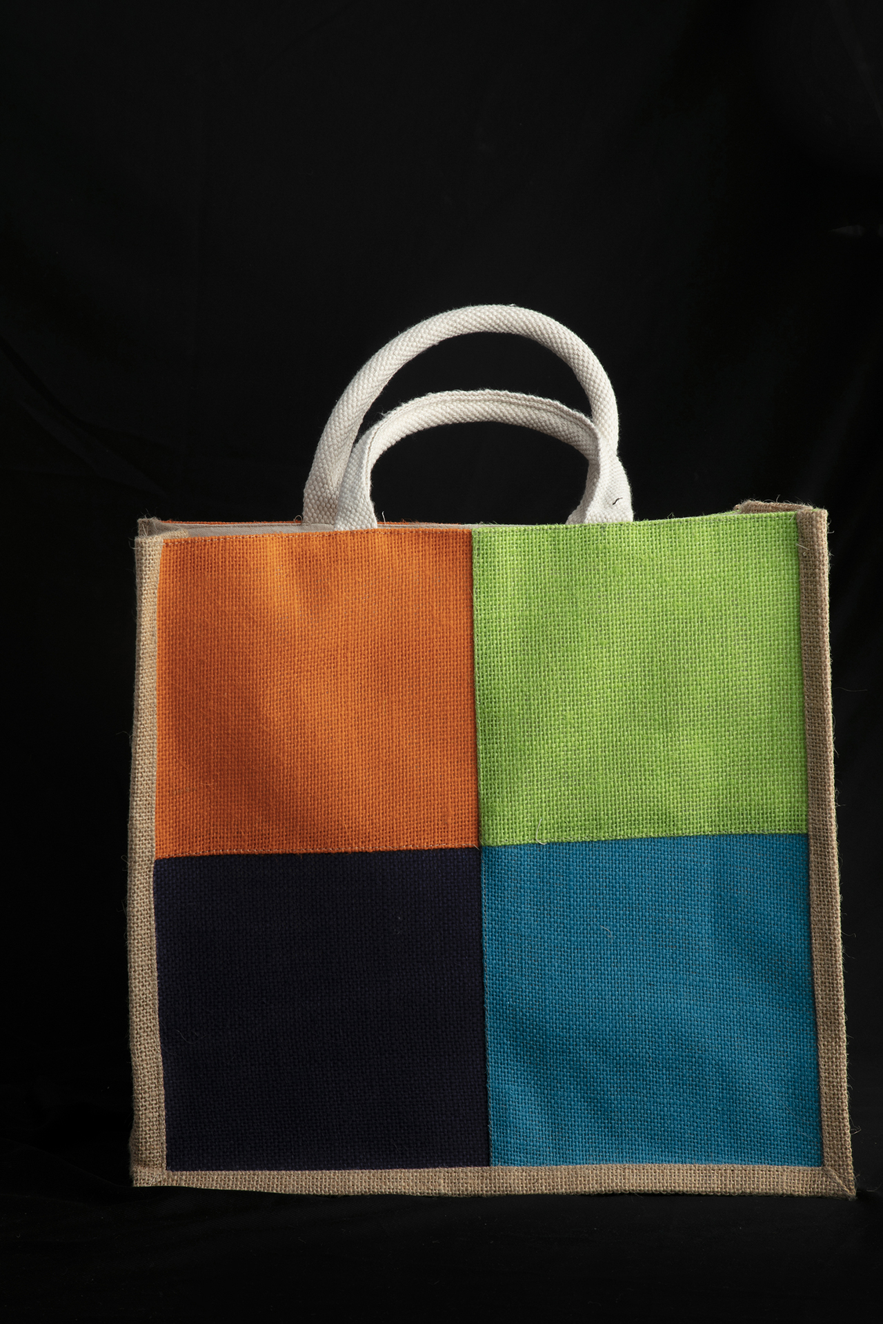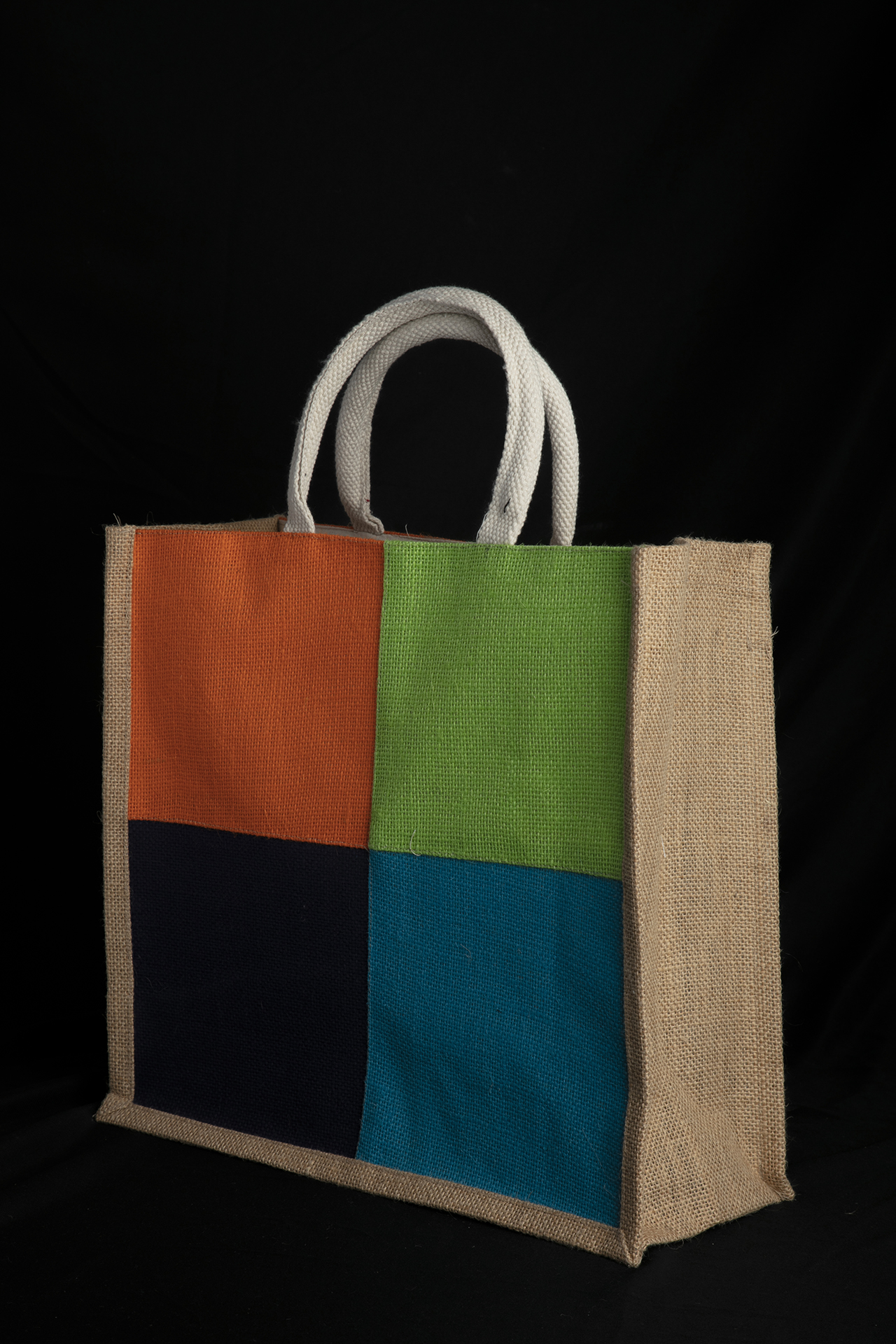 A beautiful jute bag with colored panels to perfectly showcase your design, while providing durable packaging and a great promotional item.